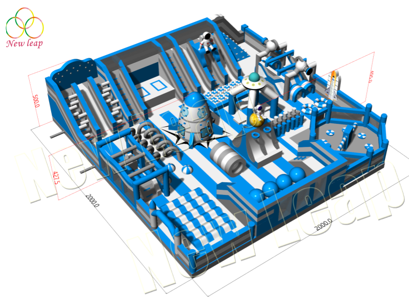 We have meticulously designed a Aerospace-themed inflatable park for our client, featuring vibrant inflatable slides, climbing areas, and bouncing zones.